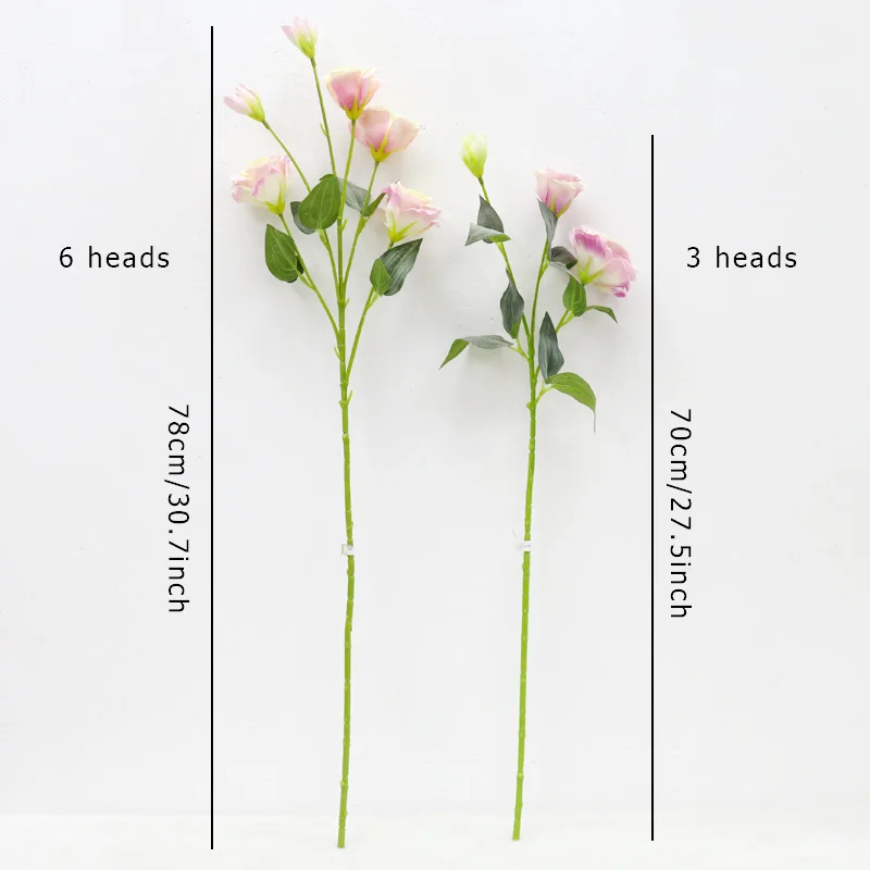 Lo stelo di eustoma artificiale in seta con 6 fiori è una soluzione elegante e duratura per decorare la casa o gli spazi evento senza la manutenzione dei fiori freschi. Sono perfetti per vasi alti, composizioni su consolle, davanzali e allestimenti per matrimoni.